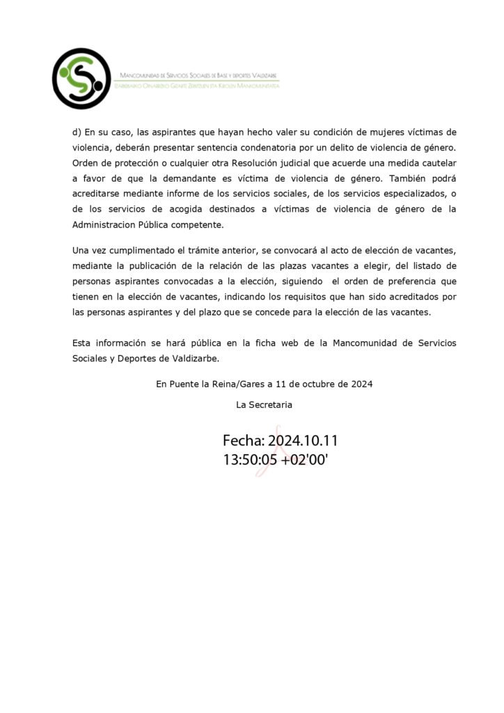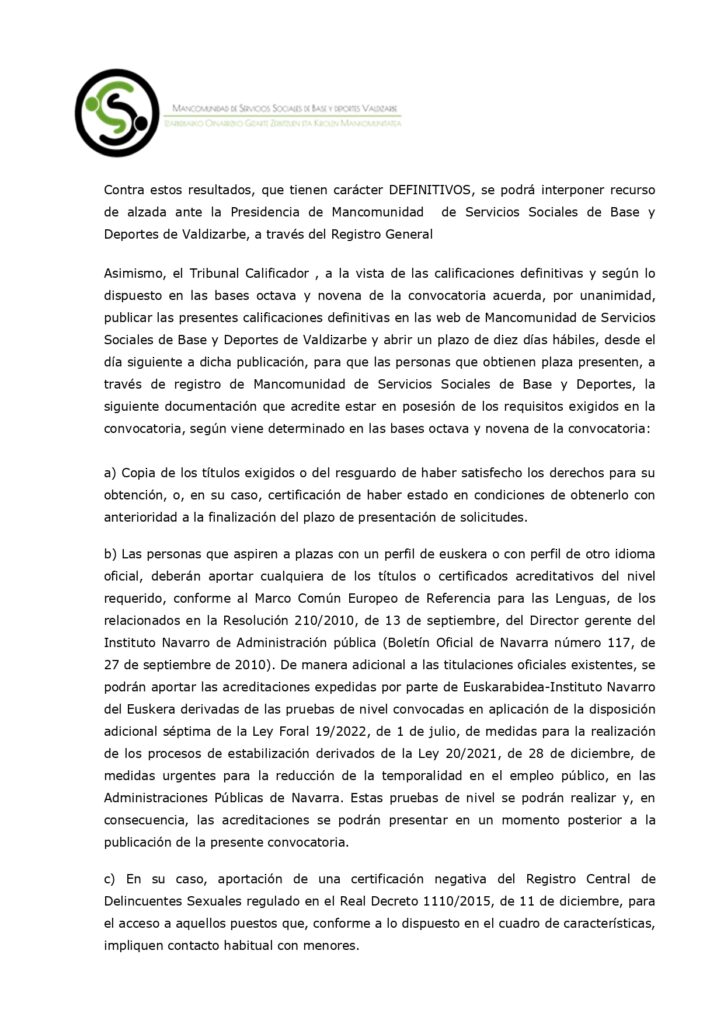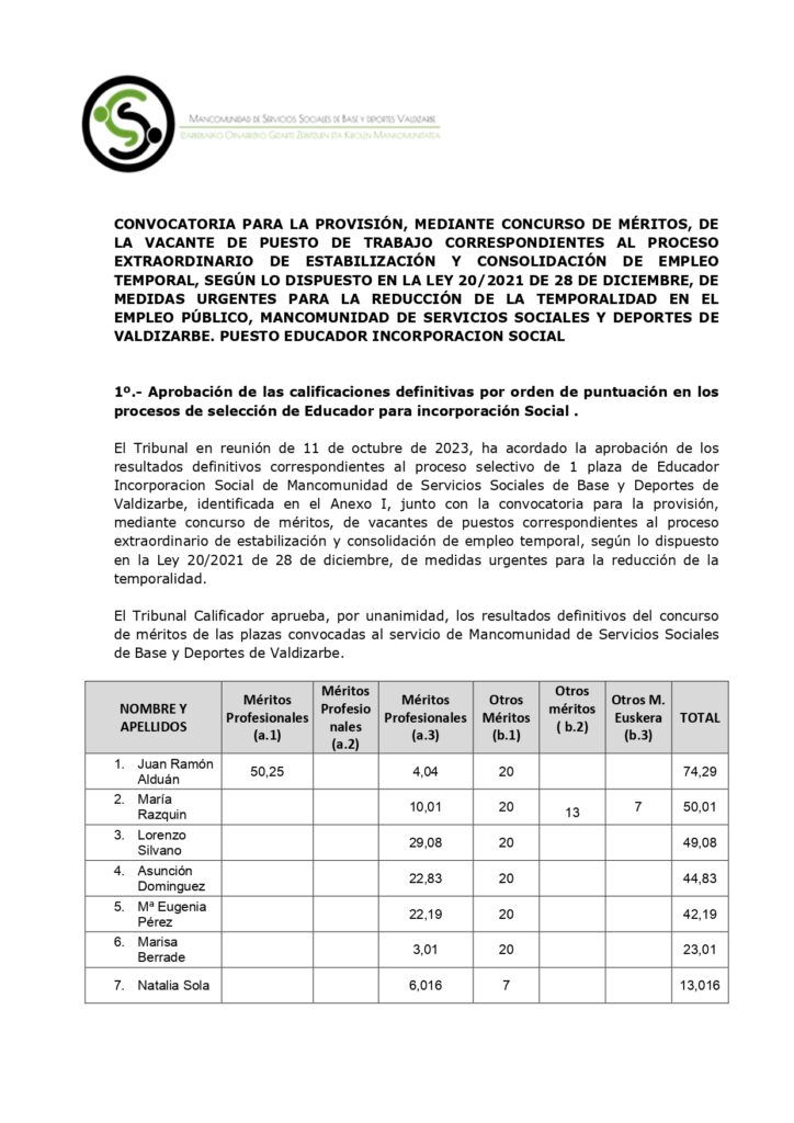 Méritos definitivos plaza Educador Social por Mancomunidad de Servicios Sociales Base de Valdizarbe | Oct 14, 2024 | Sin categoría | 0 Comentarios Enviar comentario Cancelar la respuestaTu dirección de correo electrónico no será publicada. Los campos obligatorios están marcados con *Comentario Nombre * Correo electrónico * Web Guarda mi nombre, correo electrónico y web en este navegador para la próxima vez que comente.