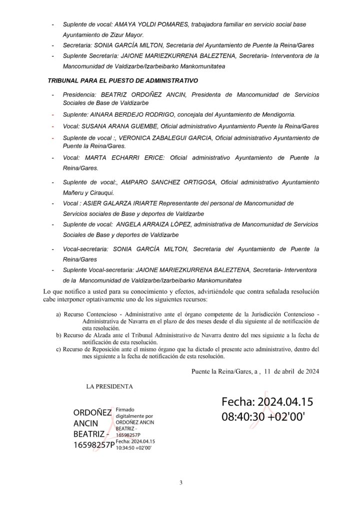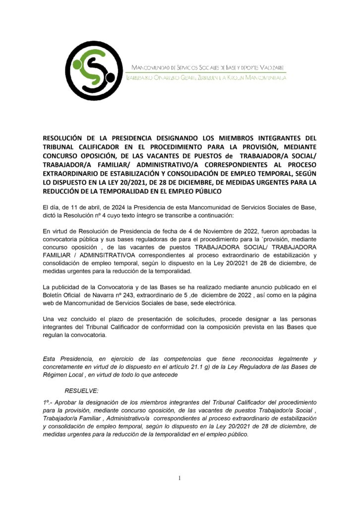 NOMBRAMIENTO TRIBUNAL CALIFICADOR por Mancomunidad de Servicios Sociales Base de Valdizarbe | Abr 17, 2024 | Sin categoría | 0 Comentarios Enviar comentario Cancelar la respuestaTu dirección de correo electrónico no será publicada. Los campos obligatorios están marcados con *Comentario Nombre * Correo electrónico * Web Guarda mi nombre, correo electrónico y web en este navegador para la próxima vez que comente.