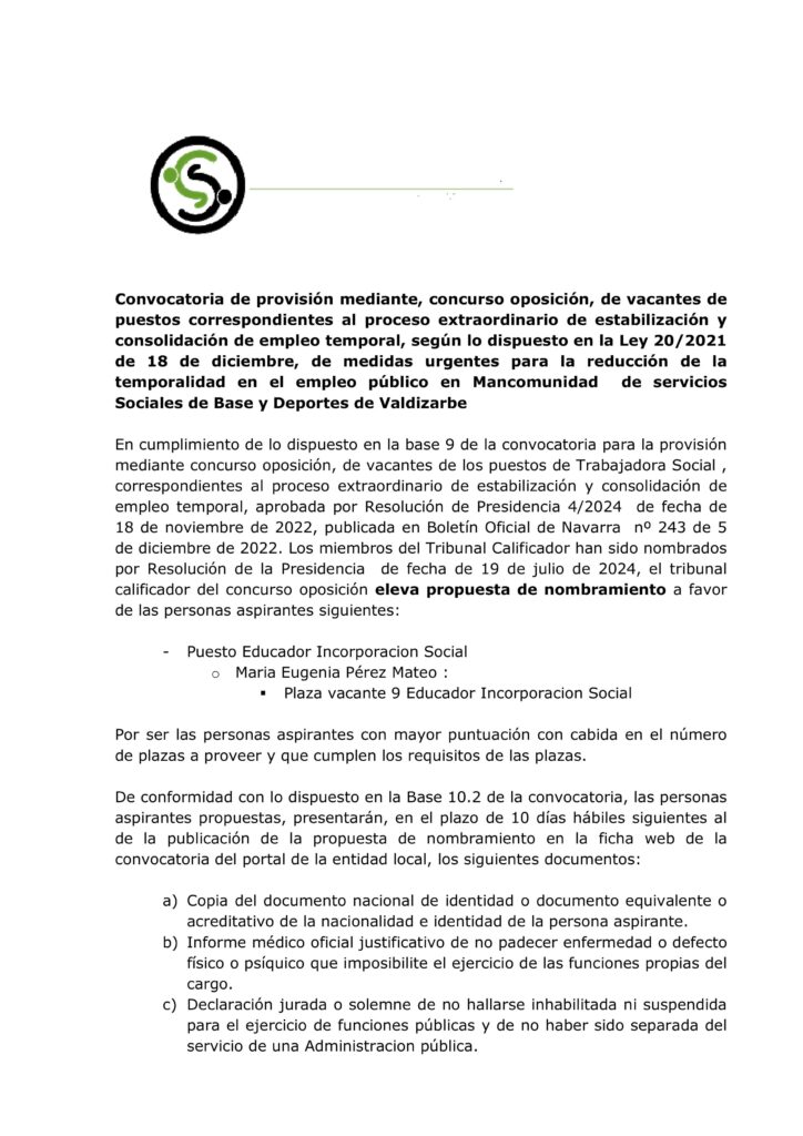 Propuesta de nombramiento de la plaza de Educador Social por Mancomunidad de Servicios Sociales Base de Valdizarbe | Nov 19, 2024 | Sin categoría | 0 Comentarios Enviar comentario Cancelar la respuestaTu dirección de correo electrónico no será publicada. Los campos obligatorios están marcados con *Comentario Nombre * Correo electrónico * Web Guarda mi nombre, correo electrónico y web en este navegador para la próxima vez que comente.