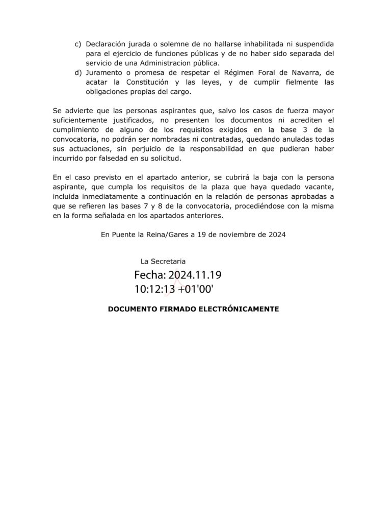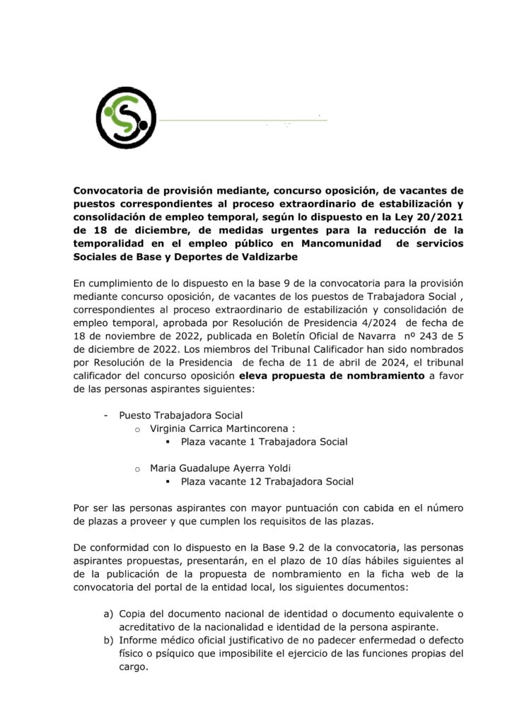Propuesta de nombramiento de las plazas de Trabajadora Social