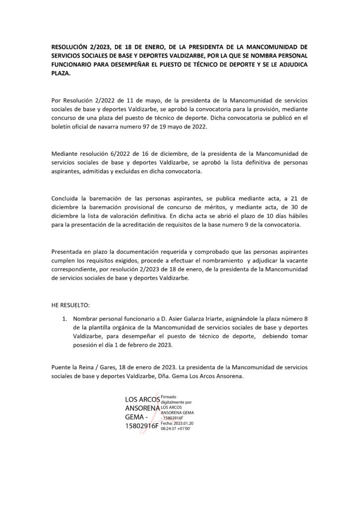 NOMBRAMIENTO DEL PERSONAL DEL PUESTO DE TÉCNICO DE DEPORTE