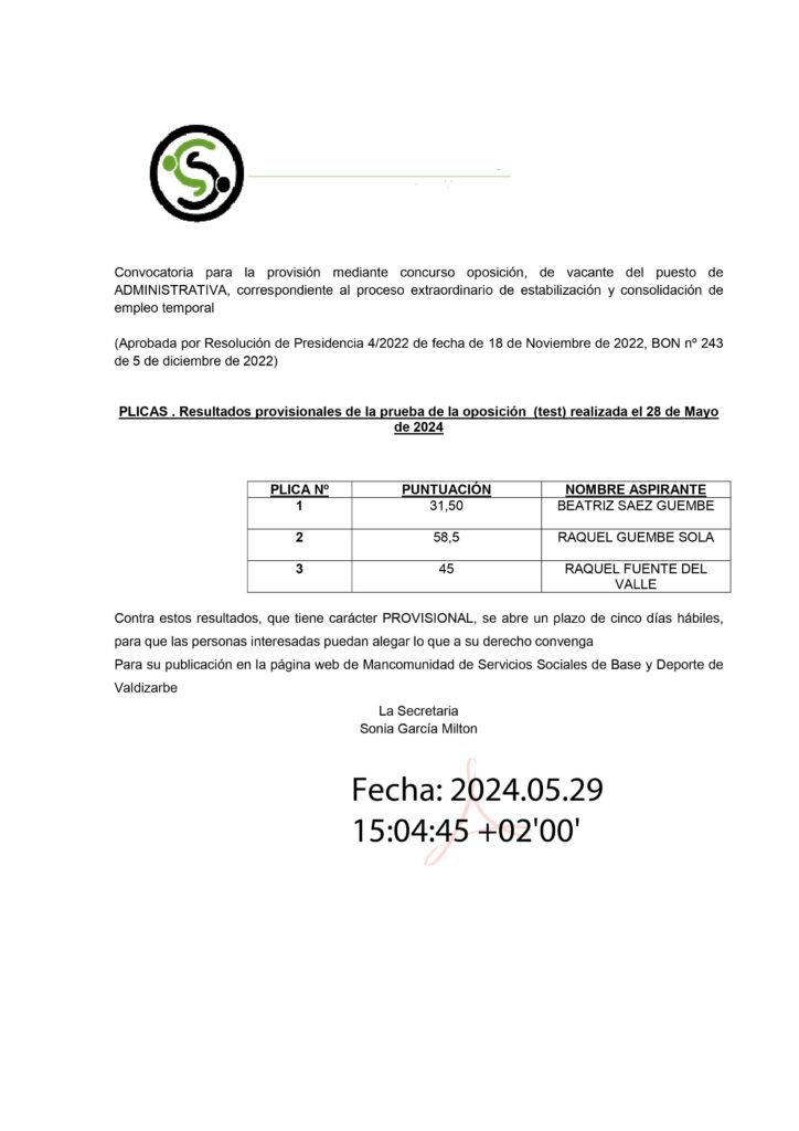 APERTURA DE PLICAS CON LAS NOTAS PROVISIONALES DE LA OPOSICIÓN DEL PUESTO ADMINISTRATIVO