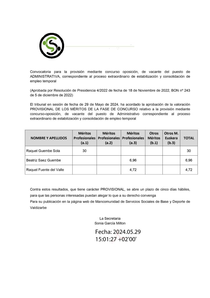 RESULTADOS PROVISIONALES DE LA PARTE DE MERITOS DEL PUESTO DE ADMINISTRATIVO por Mancomunidad de Servicios Sociales Base de Valdizarbe | May 30, 2024 | Sin categoría | 0 Comentarios Enviar comentario Cancelar la respuestaTu dirección de correo electrónico no será publicada. Los campos obligatorios están marcados con *Comentario Nombre * Correo electrónico * Web Guarda mi nombre, correo electrónico y web en este navegador para la próxima vez que comente.